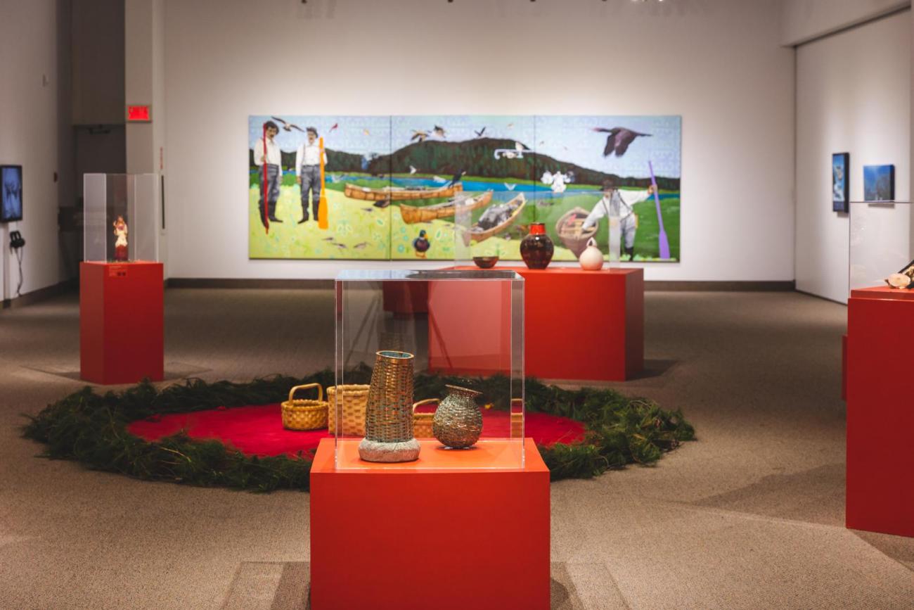 Aujourd’hui, avec mon expérience et mon savoir ancestral, ma culture et mes traditions, je désirais rassembler, au Musée du Bas-St-Laurent sur le territoire Wolastoqiyik Wahsipekuk, des artistes remarquables issu.e.s de la Confédération Wabanaki qui ont une pratique artistique variée. C’est un moment historique puisque nous sommes assis.e.s dans le même cercle pour la première fois depuis des décennies sur ce territoire. Ainsi, des artistes et artisan.e.s des communautés Wolastoqiyik, Mi’kmaq, Penobscot et Passamaquoddy sont réuni.e.s pour partager leurs créations artistiques. Les artistes allient des matériaux nobles, issus de la nature, et des matériaux contemporains, issus de l’industrialisation, tout en conservant un profond ancrage dans la culture ancestrale.