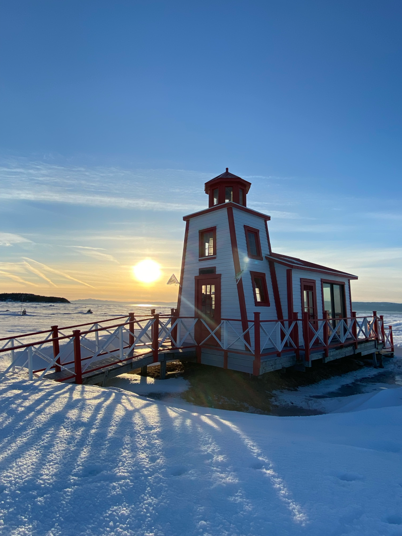 J’ai choisi le phare qui est une attraction touristique en raison de sa beauté. La faune et la flore sont à nos côtés tout en voyant au loin Charlevoix et l’île Le Long Pèlerin. Le petit phare de Saint-André situé sur le bord du fleuve Saint-Laurent reproduit le phare original de 1862.