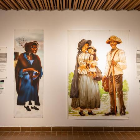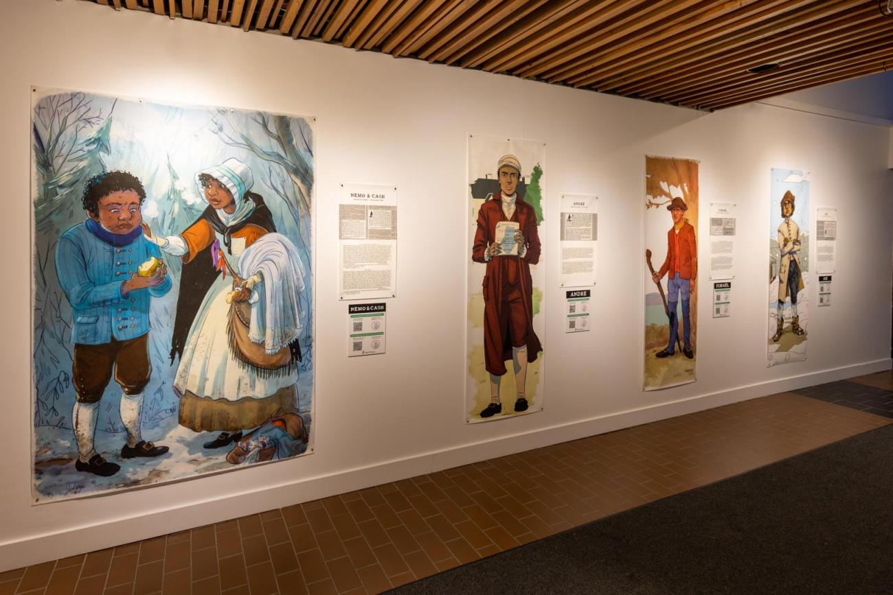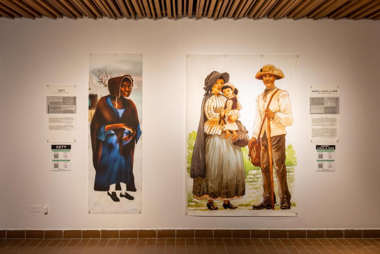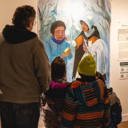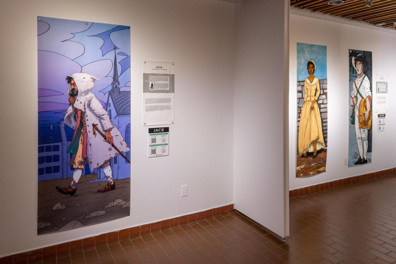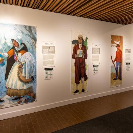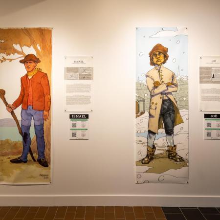 Présentant la résistance des personnes Afrodescendantes asservies au Québec, Fugitifs! est une exposition ayant pour but de réhumaniser des personnes invisibilisées. Basée sur 10 annonces de journaux de la seconde moitié du 18e siècle, l’exposition illustre 13 esclaves ayant pris la fuite. Les dessins grandeur nature, réalisés par neuf illustrateur.trices québécois.es permettent de redonner un visage à des gens déshumanisés par la servitude et, par le fait même, de démontrer la résistance à cette pratique dans des conditions ne favorisant pas la rébellion armée vu leur faible nombre.