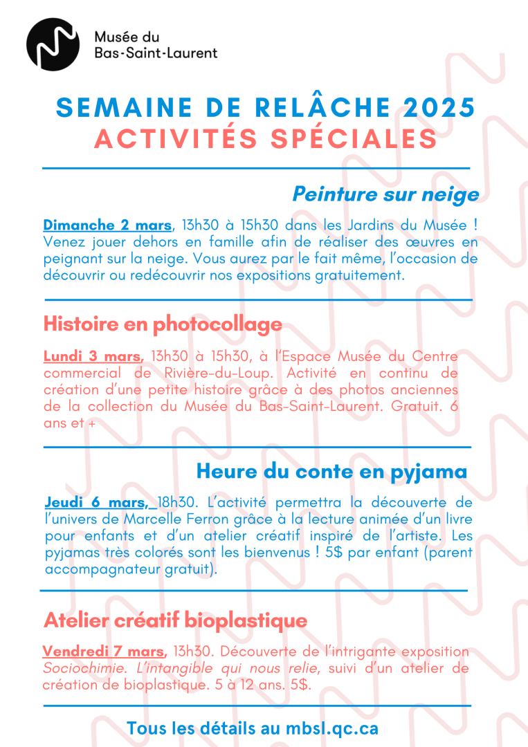Activités spéciales semaine de relâche 2025