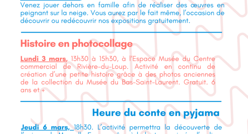 Activités spéciales semaine de relâche 2025